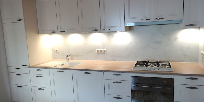Nischenrückwand mit Digitaldruck in Marmor-Optik