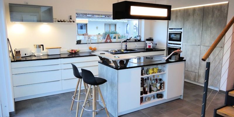 Die Hochschränke wurden flächenbündig in einer Mauernische verbaut.
